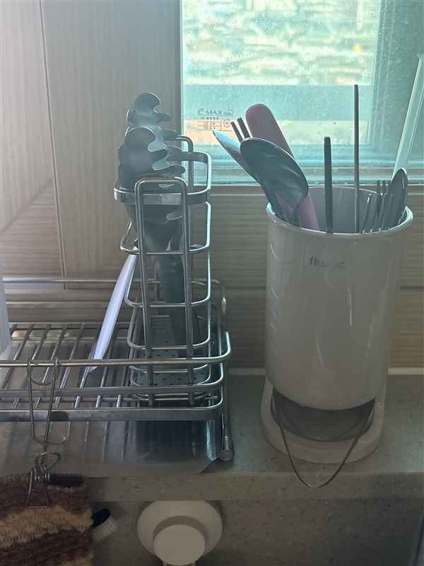 스뎅소재는 녹이 슬어서 수저통 하나 바꾸고 싶다하던 찰나에 보고 주문했어요. 저는 소재가 무거운 유리? 느낌인줄 알았는데 가벼운 플라스틱 소재네요~ 디자인이 심플하고 색이 베이지라 은은하니 부엌에 잘 어울려요. 밑에 물빠짐통도 두가지인데 미끄럼틀처럼 내려와있는걸로 쓰니 물이 바로비로 빠져서 좋아요.
